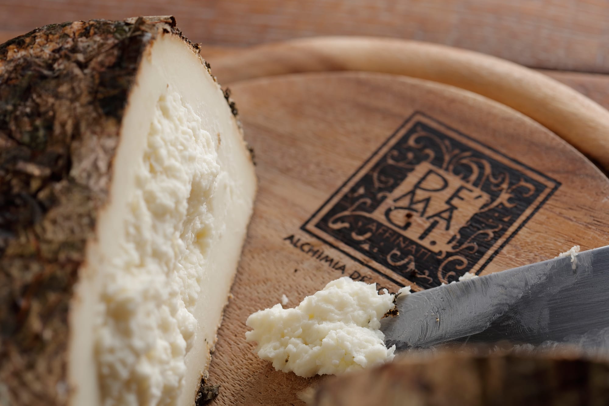 Oramai noti per avere dei nomi inusuali o comunque “trasgressivi” in questo caso il nome risale al fatto che affiniamo questo pecorino sotto foglie di fico da qui appunto diventa “Afficato”. Ovviamente chi si aspetta di trovare la sensazione dolce oppure il gusto di fico ci resta deluso, per il fatto che utilizzandone la foglia per la stagionatura non troviamo affatto la caratteristica del frutto, anzi… la foglia cede una leggera parte amara, che caratterizza il formaggio soprattutto nel sottocrosta, ma resta dolce e leggermente sapido, con una leggera nota acida al suo interno.