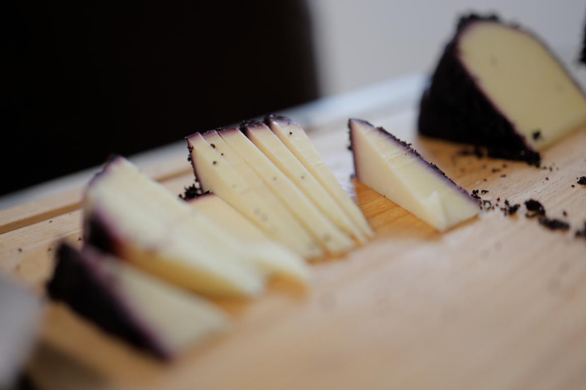 Formaggio di pecora affinato in orci con bucce di mirtilli