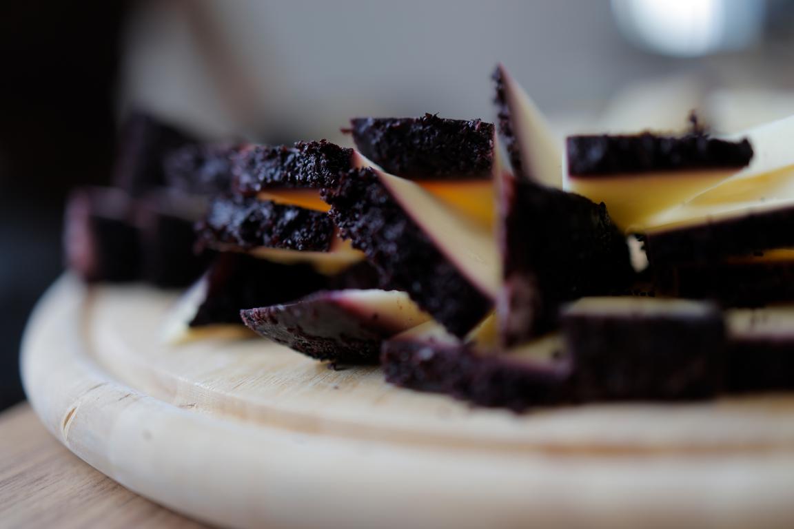 Il risultato ci ha sorpreso, perché ha conferito al prodotto non solo la colorazione tipica tendente al blu-viola scuro, ma anche il sapore del formaggio ne è stato piacevolmente contaminato.