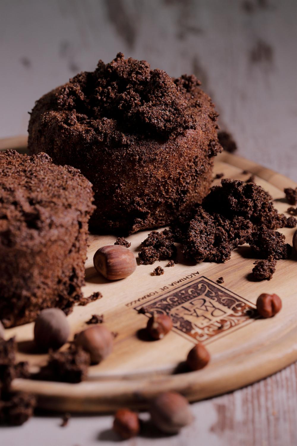 Aspetto esterno: la crosta è mediamente dura, umida e appiccicosa, il colore esterno è marrone, perché ricoperto dal perisperma delle nocciole tostate;