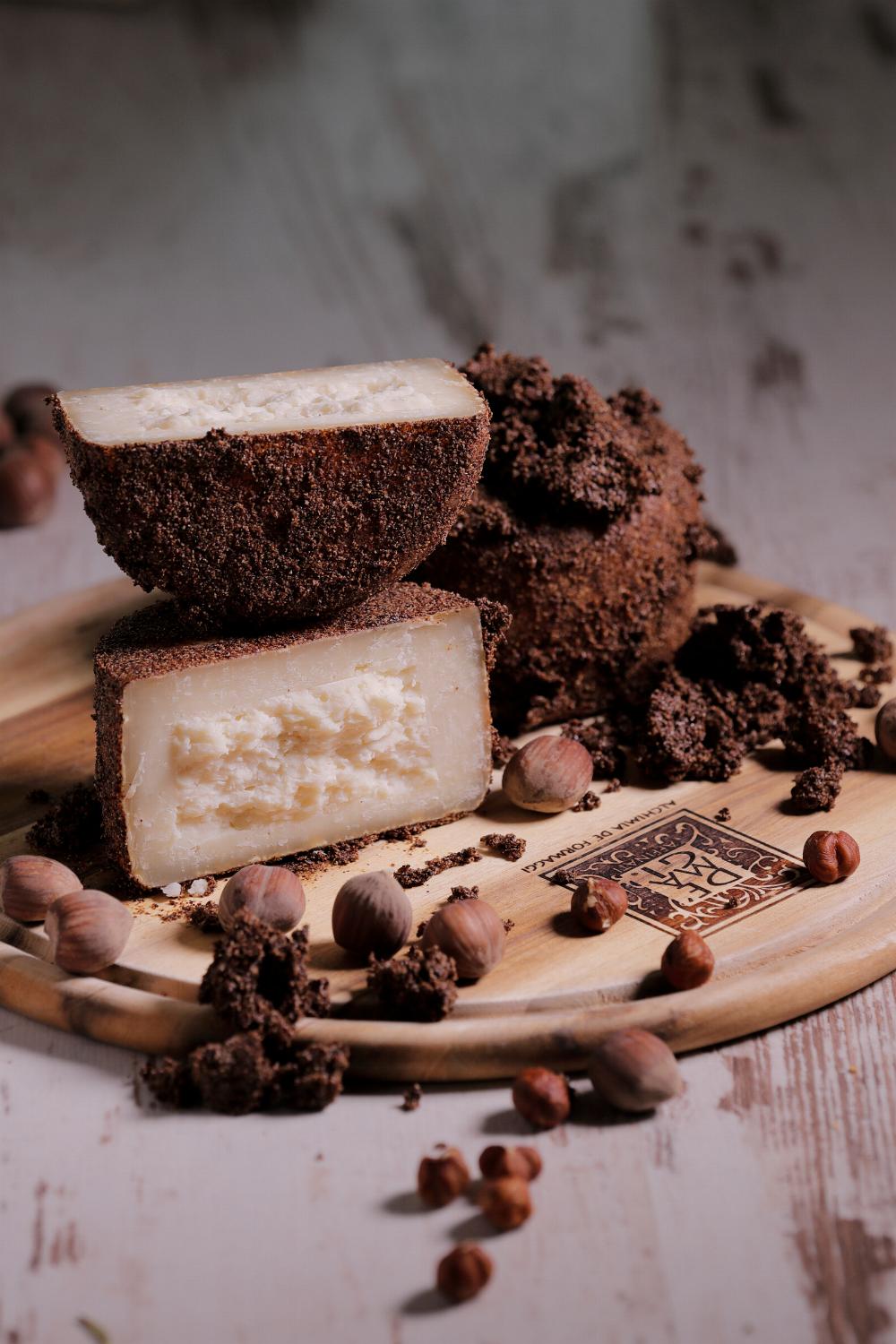Formaggio di pecora, rispetto gli altri di piccola dimensione, ma di grande spessore aromatico. Da una amicizia, ma soprattutto dalla voglia di creare sempre qualcosa di unico e diverso dal solito, è nato questo particolare formaggio affinato nella “pula” delle nocciole del Piemonte.