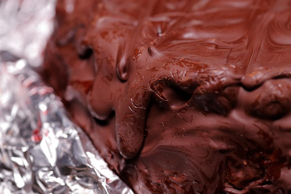 Viene tolta la crosta ed immerso in una bagna a base di Cherry e sciroppo di amarene, dopo di che vengono aggiunte le amarene candite, grattugiata la fava tonka e aggiunti i nibs di cacao e come se non bastasse, viene ricoperto con una glassatura di cioccolato fondente al 70%.