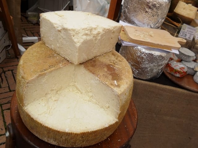 Big cheese made from sheep milk aged in caves