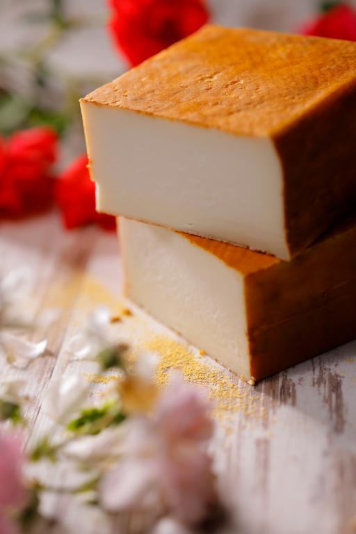 The rind is edible, with a characteristic yellow color due to the treatment of the rind with rosehip powder, also used to absorb and soothe the typical “stickiness” characteristic of washed-rind cheeses.