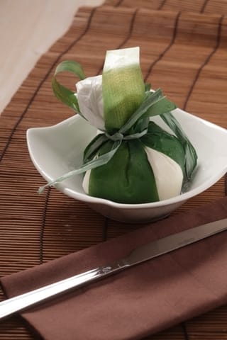 In a bag wrapped in leaves