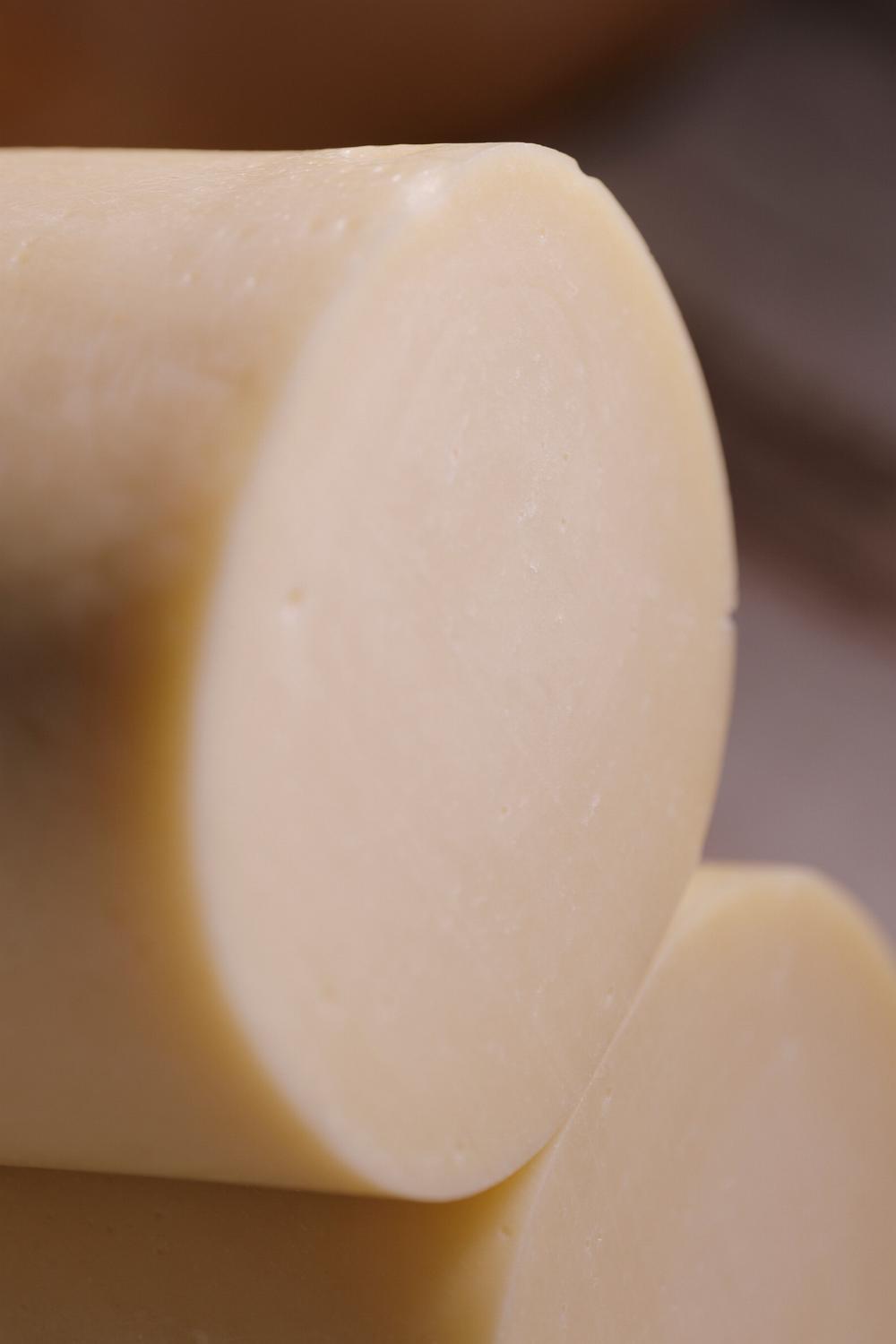 ASPECT INNER, the paste is cream-coloured, the structure fibrous and semi-hard consistency, the cut is uniform and homogeneous;